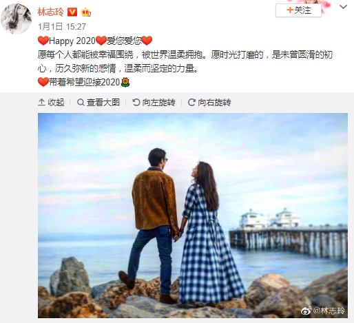 去年嫁为人妻的林志玲在2020年的第一天就晒照秀恩爱,林志玲写道:“Happy 2020,爱您爱您,愿每个人都能被幸福围绕,被世界温暖拥抱。愿时光打磨的,是未曾圆滑的初心,历久弥新的感情,