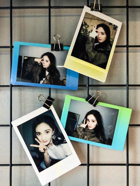 工作室晒杨幂拍立得美图 酷爱剪刀手花式比V