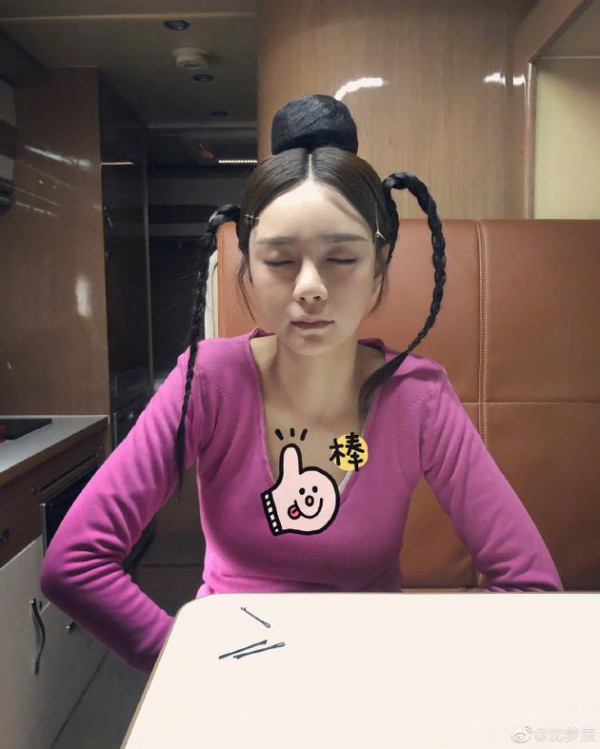 1月9日,沈梦辰在微博上分享了一张自己的照片,并配文:“早起傻一天,穿着我销魂的秋衣,梳着半成品的头发,加油,杀青倒计时…” 照片中的沈梦辰穿着保暖神器粉红色秋衣,扎着新剧造型需要的双麻花辫,一大早出工,看起来十分疲惫,已经困的睁不开眼睛了。