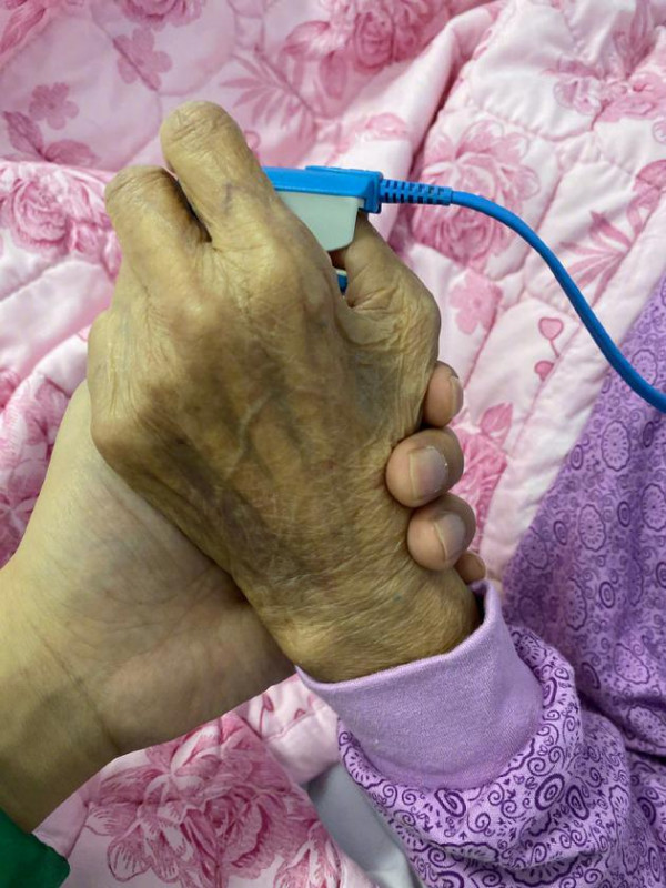 潘粤明握着姥姥的手