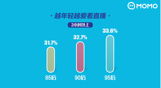陌陌发布《2019主播职业报告》:33.6% 的95后每天看直播超2小时