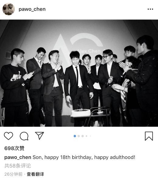 陈坤为儿子庆18岁生日 优优穿西装帅气有型