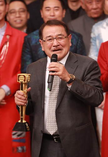 入行52年的刘丹昨晚拔头筹夺得“万千光辉演艺人大奖”,由去年得奖者兼拍档薛家燕颁奖给他,正好昨天是丹爷的农历生日,全场为他唱生日歌祝贺,令丹爷感动得要用纸巾抹泪。
