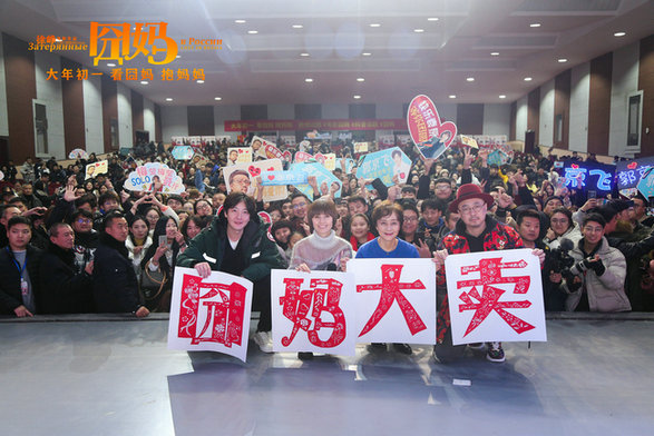 《囧妈》超前观影送温暖 三代同堂全家团建