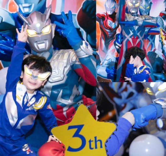 黄晓明包场为儿子庆生 扮奥特曼与Baby小海绵合影