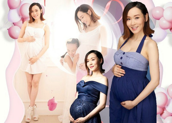 港姐杨思琦晒怀二胎写真照 大女儿手扶孕肚温馨有爱