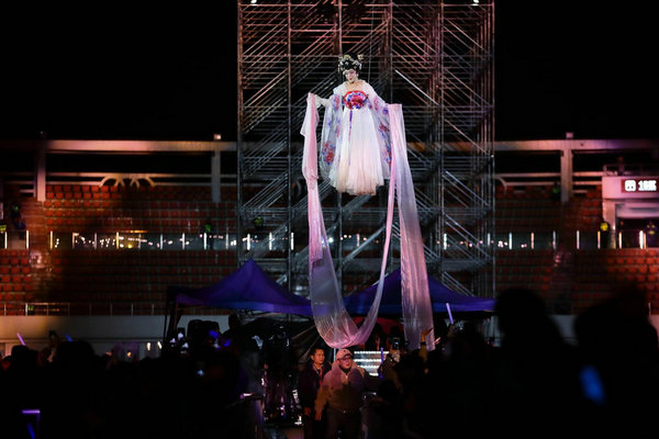 李玉刚演唱会雨后挑战高空威亚 嫦娥飞天造型仙气十足