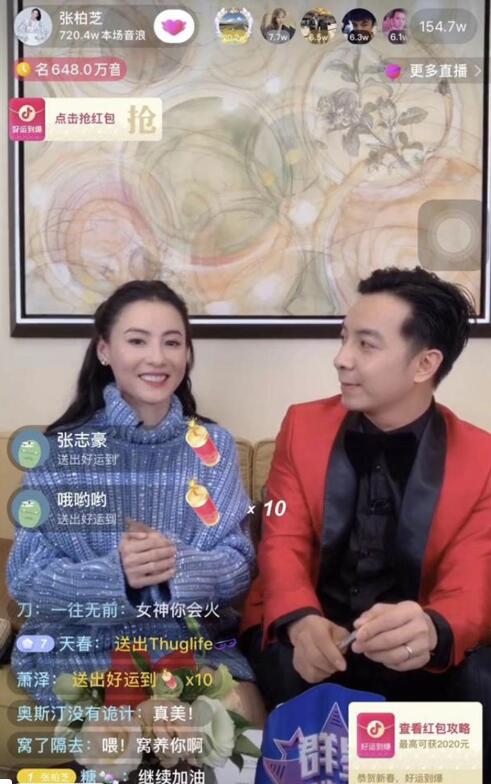 据台媒,张柏芝日前在网上开直播,礼品疯狂霸屏,最高峰同时线上人数160多万人,证明己经40岁的女星张柏芝风采依然宝刀不老,有着非常多的粉丝。