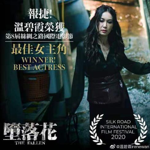 2月2日晚,温碧霞通过微博晒新片《堕落花》剧照,并发表长文感慨获封丝绸之路国际影后,称:“还记得第一次提名最有前途新人奖的时候是15岁,而在那个时候我已经告诉自己我一定要成为一个出色的演员,而一直以来我都没有放弃过,当然能够成为最佳女主角也是我最大的梦想。所以我想告诉大家,别轻易放弃你的理想,因为最大的快乐就是拥有自己的梦想而不断往前迈进,当你梦想成真的时候,就是最大的快乐。要谢谢雄叔叔对我的欣赏,给我这个那么出色有挑战性的角色,而李卓斌导演绝对是我近年最合拍的一个导演,欣赏他的执导能力,对镜头,摄影,剪接,都那么恰到好处,最爱他的日系风又有点欧陆味道,而剧本也是非常重要,阿雨这个角色写得有血有泪,感情复杂而又丰富感人,所有人物都是恰到好处,ps:当然要谢谢杨生和我的经理人团队。”