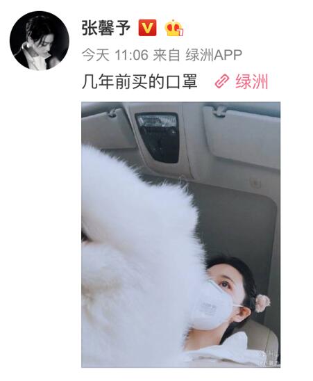 2月4日,张馨予在微博上晒出带着口罩与狗狗的合照,并配文“几年前买的口罩”。 2月4日,张馨予久违地在微博上晒出自己与狗狗的合照并配文“几年前买的口罩”