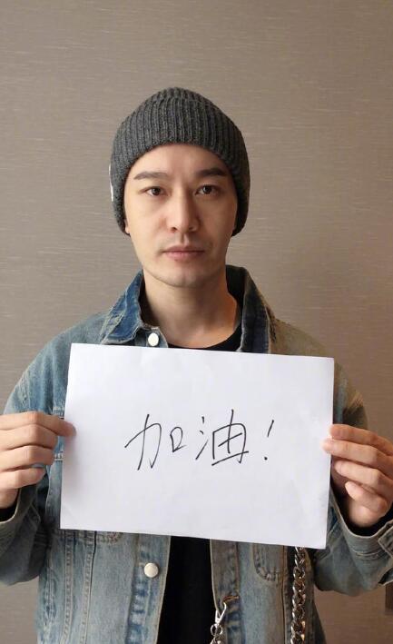 2月4日,黄晓明在微博晒出手写加油声援防疫的照片,并发文:“万众一心,同舟共济,武汉加油!中国加油!有爱就会有力量!”照片中,黄晓明身穿牛仔外套搭配灰色针织帽出镜,手上拿着一张