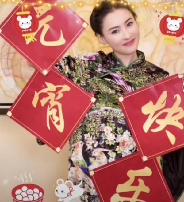 张柏芝元宵送祝福 穿短款旗袍皮肤白皙笑容甜