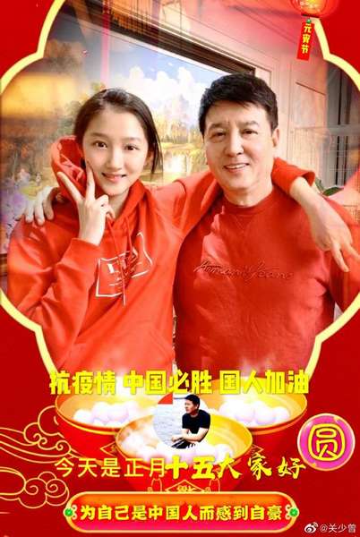 2月8日,关晓彤的父亲关少曾在微博上晒出自己与女儿的合照,照片中父女俩都穿着大红色的衣服,搂着对方的肩膀,笑容灿烂。关少曾还为合照P上了大红色的边框,并在照片上配字“抗疫情,中国必胜,国人加油”、“为自己是中国人而感到骄傲”。还配上自己创作的抗疫打油诗,祝大家“元宵佳节平安健康,团团圆圆,顺顺心心”。