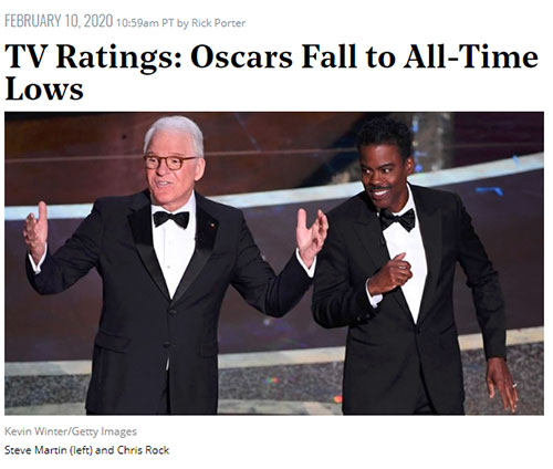 2020年第92届奥斯卡收视率出炉 创历史新低