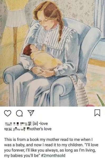 近日,撒贝宁妻子李白在社交软件上传一张母亲怀抱婴儿的插画并配文:“这是我婴儿时期我的妈妈给我读的书,现在我读给我的孩子。只要我活着,我会永远爱你们,我会永远喜欢你。”