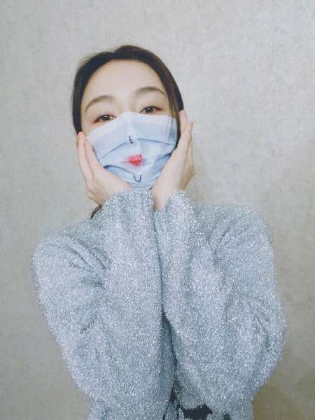 情人节袁姗姗比心传递爱 在口罩上画红心软萌搞怪