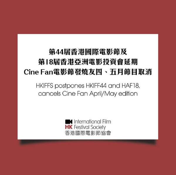 香港国际电影节协会日前宣布,鉴于近日新型冠状病毒疫情,第44届香港国际电影节(HKIFF44)及第18届香港亚洲电影投资会(HAF18)将延期举行。