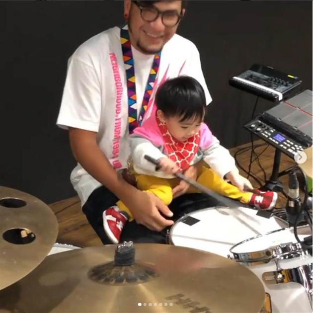 张震岳排练儿子来探班 小谷沐打鼓超有天份