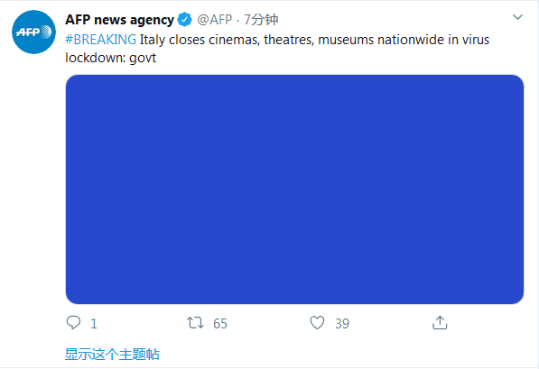 受疫情影响 意大利宣布关闭电影院剧院博物馆