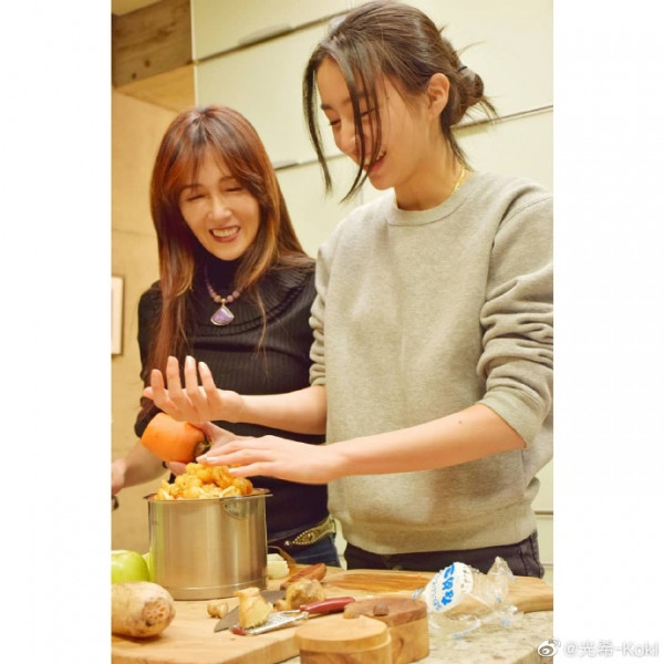 3月8日,木村光希在微博晒出和妈妈工藤静香一起做饭的照片,幸福写道:“Cooking with mum ? ”照片中她身穿灰色卫衣,简单挽起长发;工藤静香身穿黑色针织衫身材苗条