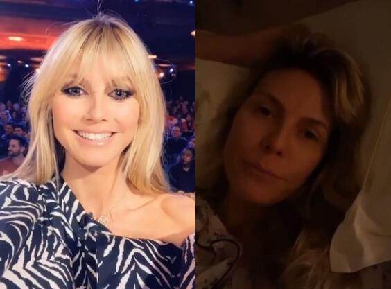 据台湾媒体报道 德国超模海迪·克卢姆活跃好莱坞,最近正担任选秀节目《美国达人秀》评审,但本周却临时缺席,她在Instagram曝光穿着睡衣在家休息的影片,表示自己有感冒发烧等症状,想要主