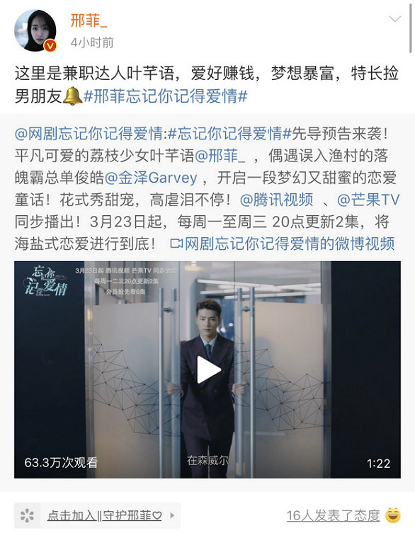 由邢菲主演的都市情感剧《忘记你,记得爱情》自立项开始便备受瞩目,今日终于迎来官宣定档的好消息,自3月23日起每周一、二、三在腾讯视频、芒果视频同步播出两集,这让一直期待该剧的粉丝们激动不已。颜值与实力兼具的暖萌小美女邢菲自出道以来便以甜美乐观不服输的形象示人,此次《忘记你,记得爱情》的女主角可以说是为她量身打造!