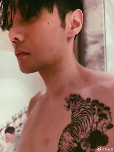 19日晚,李荣浩分享自己贴文身的经历,“贴的时候造型师对我说,没事,李老师你就放心贴,晚上回去洗个澡,一搓就掉了,于是我从当天晚上开始搓,后来大半个月过去了,还是有半只老虎在胸前,根本搓不