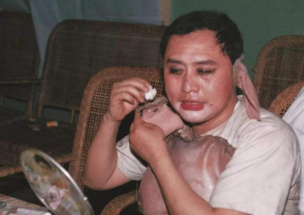 猪八戒扮演者马德华在卸妆,大汗淋漓非常辛苦。