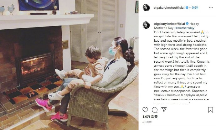 一周前透露确诊新冠肺炎的演员欧嘉·柯瑞兰寇,如今宣布自己已经完全康复(completely recovered)。此前她透露新冠确诊,已在家隔离一星期。如今她表示在第一周大多数时间卧病在床,高烧、头痛。第二周不发烧了,开始轻微咳嗽、疲惫,而在第二周结尾,除了早上有一些轻微咳嗽,她感到身体完全好了。这期间她表示吃了一些治头痛发烧的药物和维生素等。