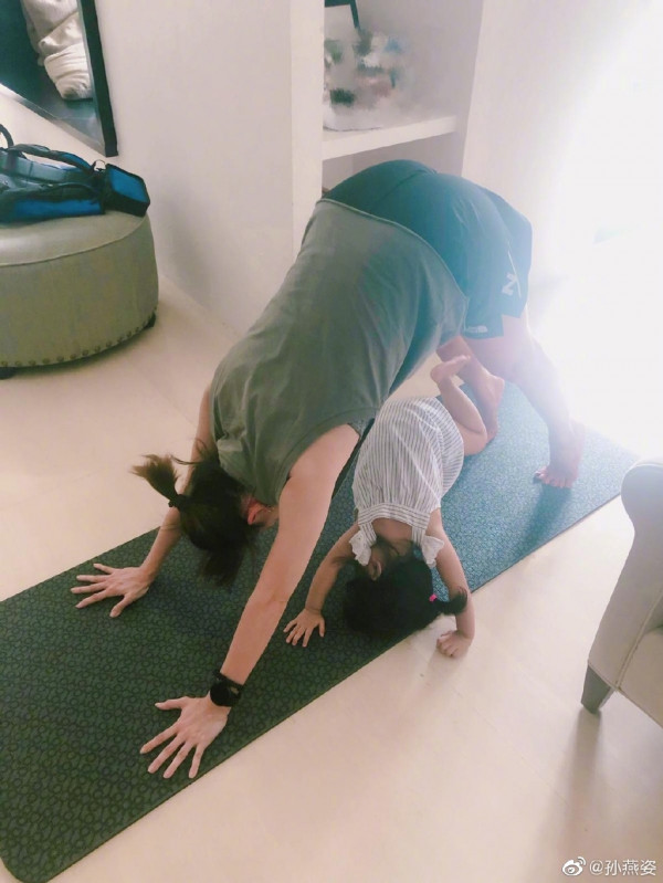 在家里可以做哪些事情?孙燕姿和女儿练瑜伽玩躲猫猫
