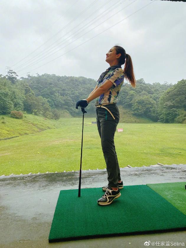 4月23日晚,任家萱通过微博晒打高尔夫球的照片,并配文写道:“今天有点帅!姿势很美但是距离依旧不远。”照片中,任家萱穿着一身休闲运动装,扎着高高的马尾,双手撑着杆子,抬头看向远