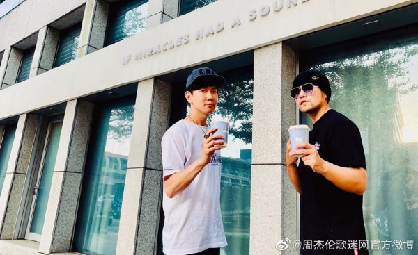 周杰伦林俊杰约喝咖啡 两人摆同款pose装酷