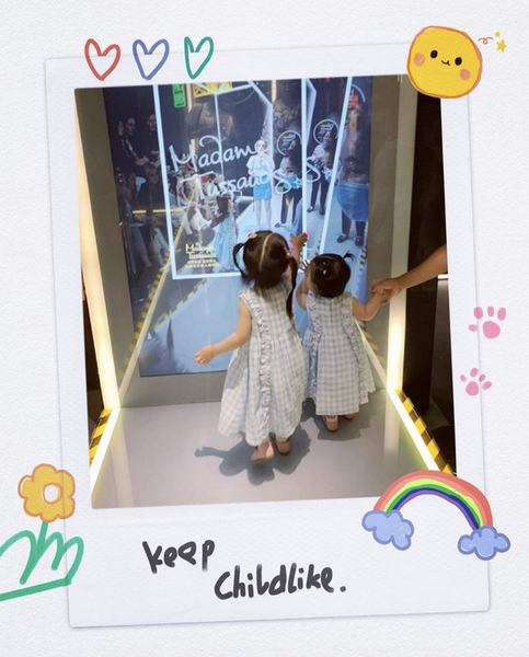 6月2日凌晨,方媛在社交平台晒出一张女儿们的在玩耍的背影照,姐妹俩穿着同款蓝白格公主裙,十分可爱,郭富城怕妹妹摔倒抓住小手。方媛还在照片上手绘了许多卡通图案,并配文模仿女儿们的语气:“爸爸带我们出来过儿童节咯~开心!”
