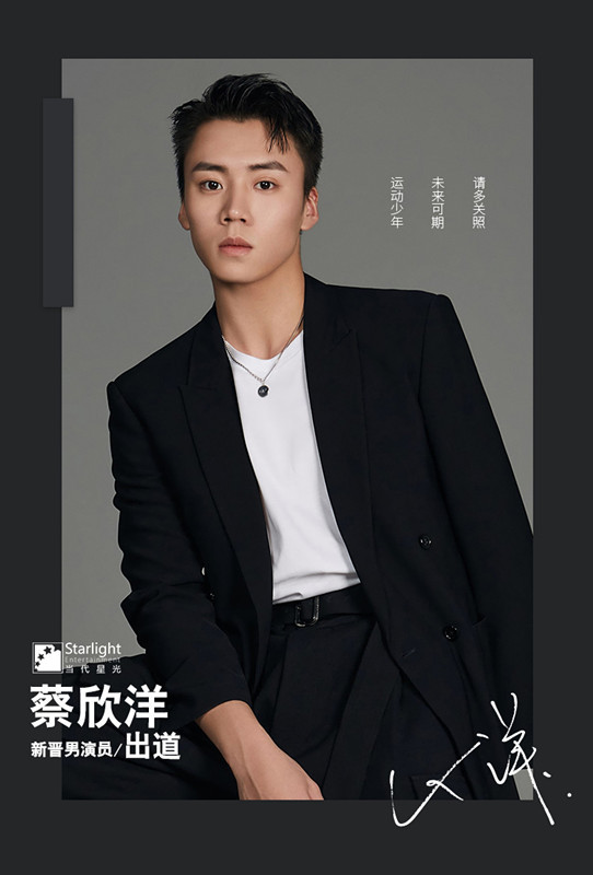 近日,演员蔡欣洋与国内新兴影视公司北京当代星光传媒有限公司签约,正式成为旗下艺人。海报中蔡欣洋一身黑色简约西装搭配白色T恤,配上干净利落的短发,极简风却又极具质感。不同于之前曝光的写真照中阳光清秀的大男孩形象,这一次的蔡欣洋眉宇间透着英气,具有穿透力的眼神更凭添了几分硬朗的感觉,一副冷峻的大男孩模样,分外吸睛。
