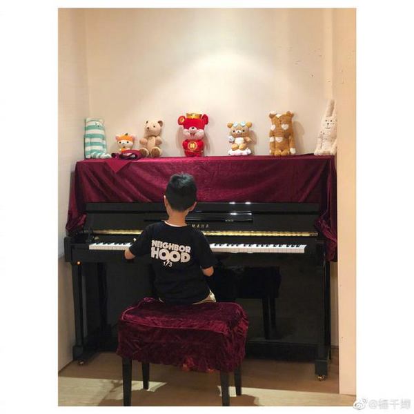 杨千嬅晒儿子弹钢琴背影 幻想小丁将来给自己伴奏