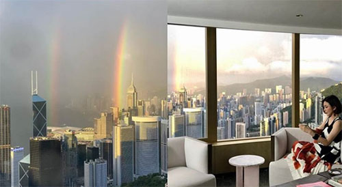 因为疫情的关系,关之琳多待在家,和爱犬为伴,更笑称无所事事,近日在IG晒出欣赏双彩虹照片,用英文写下:What a lucky sign for HK,而好友吕良伟太太杨小娟也晒出她在家喝茶赏美景的照片,表示最美的姐在家里与最美的彩虹相遇。