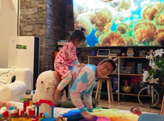 6月22日,秦舒培在社交平台上更新了一张陈冠希和女儿Alaia互动的照片。Alaia穿着粉色睡衣骑在爸爸身上,陈冠希非常配合,穿了一件和独角兽同色系的T恤,带着独角兽的角,一脸开心地望着女儿,其中幸福俏皮的气氛让人觉得特别温暖。