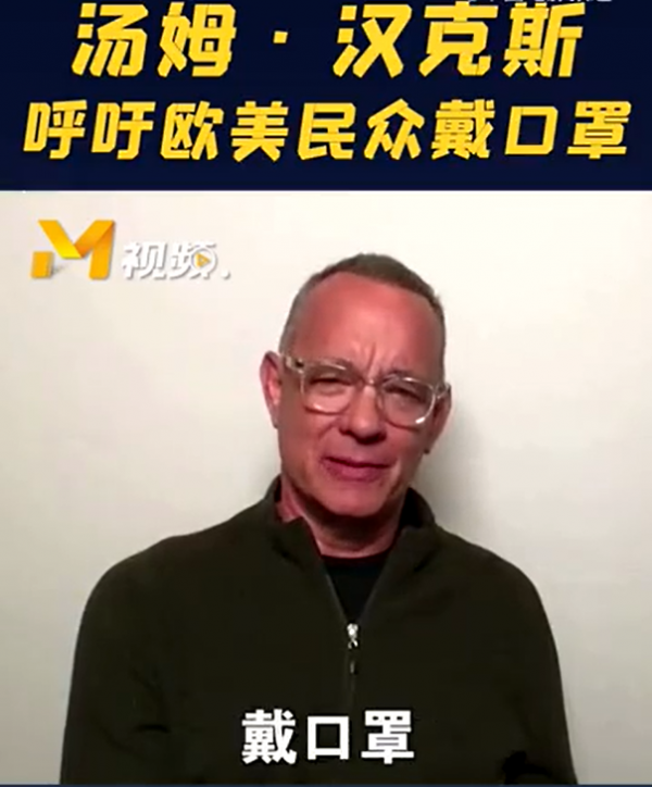 汉克斯录制视频呼吁欧美民众戴口罩:“每个人至少可以做到三件小事:戴口罩、勤洗手、保持距离。如果这都做不到,你也不值得我尊重。”
