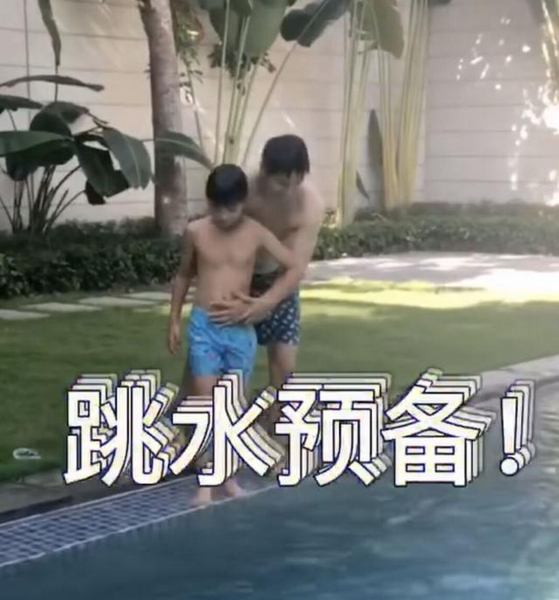田亮十分耐心地为儿子讲解跳水的正确动作,从后面扶住儿子想让他跳下去,没想到小亮仔一把推开爸爸走到一旁,面露惧色。田亮又在岸边做了一遍示范,直到他毫不犹豫地跳入水中后,儿子才胆小的抱膝蹲着跳下去,却与田亮教的动作完全不一样。