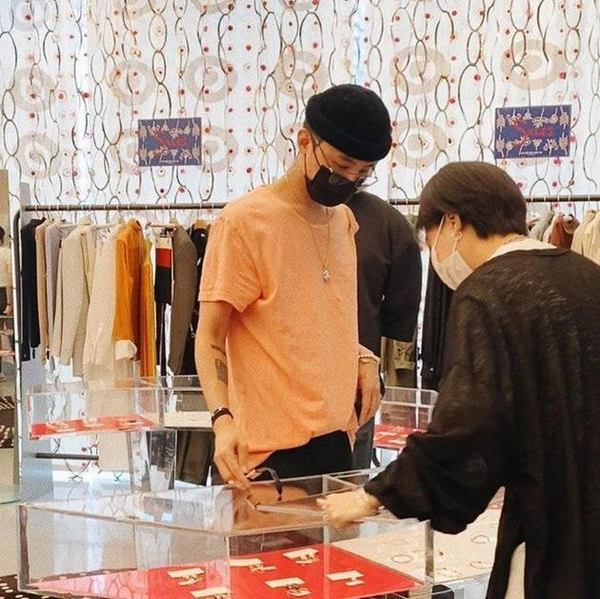 7月13日,权志龙逛街购物被网友偶遇,照片中,权志龙身穿橘色T恤和黑裤装扮简单清爽,他戴着帽子、眼镜和口罩注意防疫,在柜台认真选购饰品,虽然挡住了半张脸却依然难掩帅气。