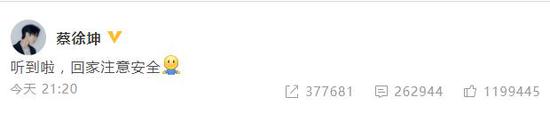 蔡徐坤回应粉丝生日祝福:听到了 回家注意安全