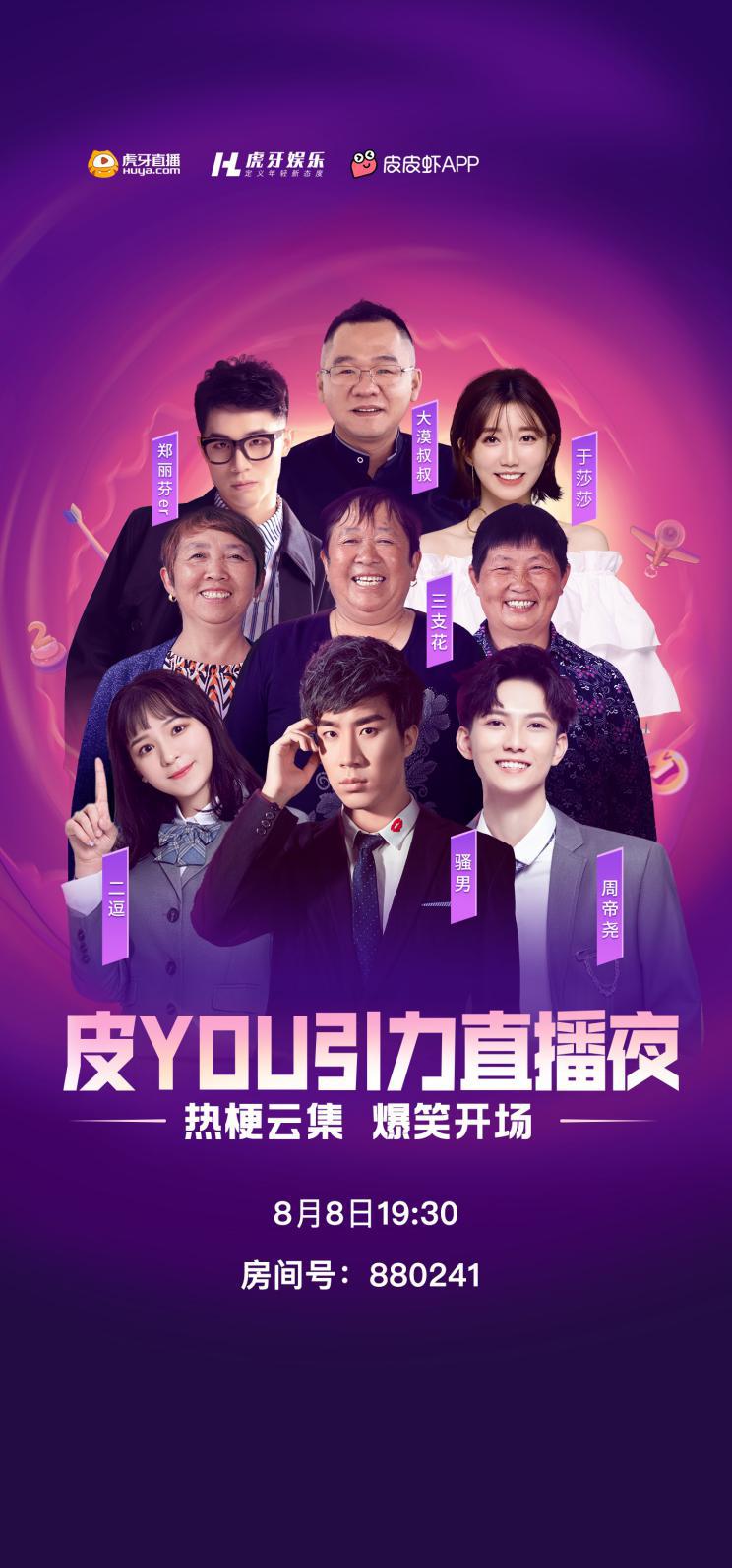 骚男和三支花强强联手会擦出什么样的广场舞火花?8月8日晚上19:30,热梗云集,爆笑开场,皮皮虾两周年《皮you引力》之夜,你准备好在虎牙直播间880241爆笑了吗?
