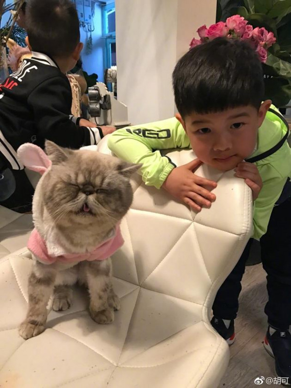 8月21日晚,胡可更新微博晒安吉和小鱼儿帅照,并和网友互动道晚安。照片中,安吉趴在椅子上,呆萌的看着镜头,身后的鲜花正好在他的头顶,变身“花姑娘”。另外一张,小鱼儿也躲在椅子背后,张着大大的嘴巴卖萌,和哥哥完全两种风格,椅子上的猫咪乖乖的仍由兄弟两合影。 此微博曝光后,网友纷纷围观并留言称:“养猫了 ,沙溢的家庭地位又掉了一个段位。”“有两个小可爱的感觉真好!”“两兄弟越来越帅了!”