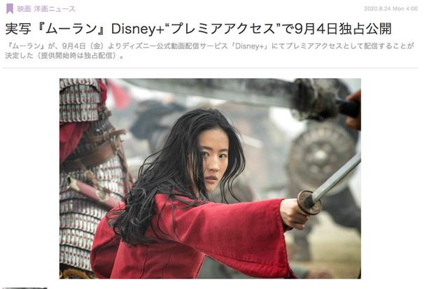 8月24日,据日本媒体报道,由刘亦菲主演的电影《花木兰》将不会登陆日本院线,同步上线流媒体。日本点播费用为2980日元,约195元人民币。据悉,影片最新定档9月4日。
