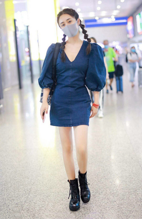近日,刘芸以一身蓝色牛仔泡泡袖连衣裙和马丁靴的搭配现身机场。硬挺的牛仔面料使整体更加有型,立体感十足。