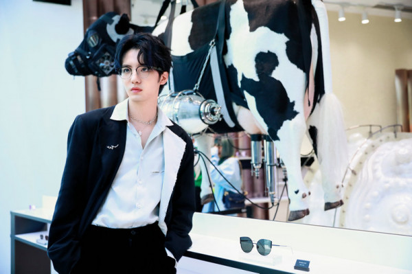 9月18日,谷蓝帝一袭黑白装束亮相某品牌活动现场,解锁时尚黑科技,探索科技新“视”界。
