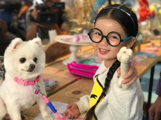 8月25日,萌娃阿拉蕾微博晒出一张与可爱博美犬的合照,配文:“每天都要好心情!”照片中的阿拉蕾戴着圆圆的眼睛对镜头甜笑,鬼马可爱。