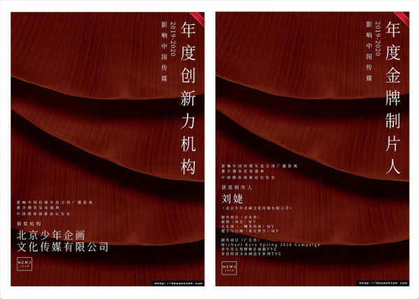 近日,中国媒体创新论坛暨“影响中国传媒”2019-2020年度全国广播影视推介盛典在横店隆重举行。论坛上,国际化创意视觉团队少年企画斩获“影响中国传媒”2019-2020年度创新力机构大奖,旗下制作人刘婕获得“影响中国传媒”2019-2020年度金牌制片人奖项。
