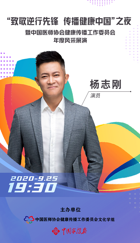 9月25日晚,“致敬逆行先锋,传播健康中国”之夜暨中国医师协会健康传播工作委员会年度风采展演在博鳌隆重举行,实力派演员杨志刚受邀出席该活动。会上,杨志刚被授予中国医师协会健康传播工作委员会健康传播文化品牌代言官头衔。