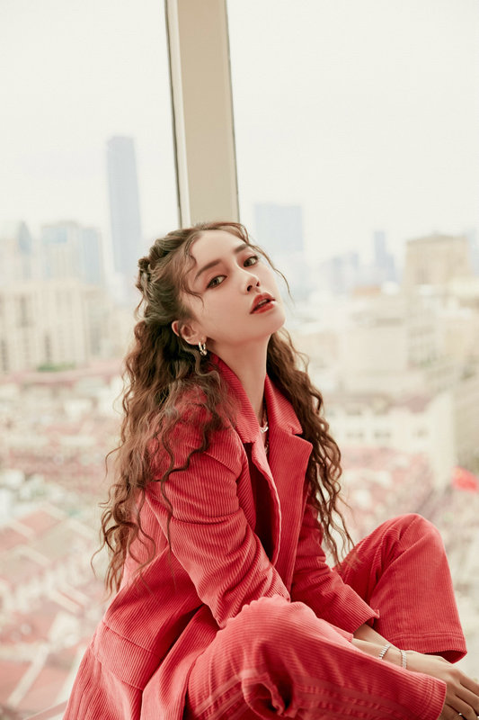 18日,angelababy一组深秋大片发出。图中,angelababy身穿橙红装迎深秋,梳双马尾卷泡面头俏皮可爱。